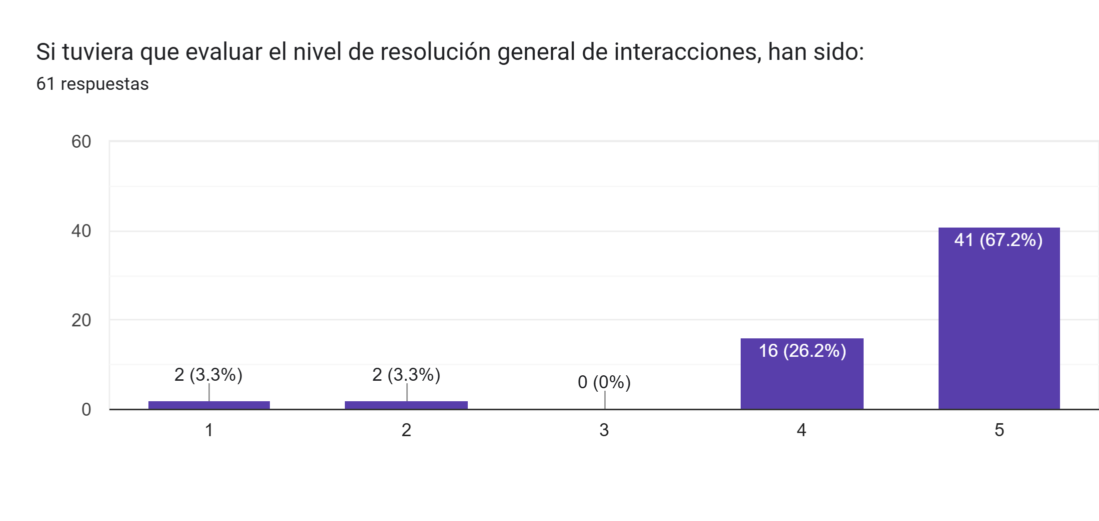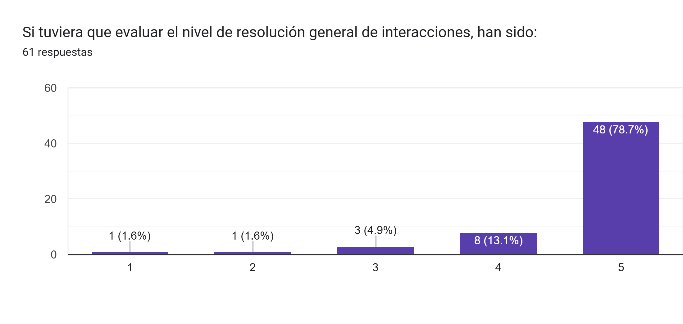 Los resultados reflejan un alto nivel de satisfacción, con la mayoría de las respuestas ubicadas entre el 70% y el 100% en la escala de Likert, donde 5 representa la máxima puntuación.